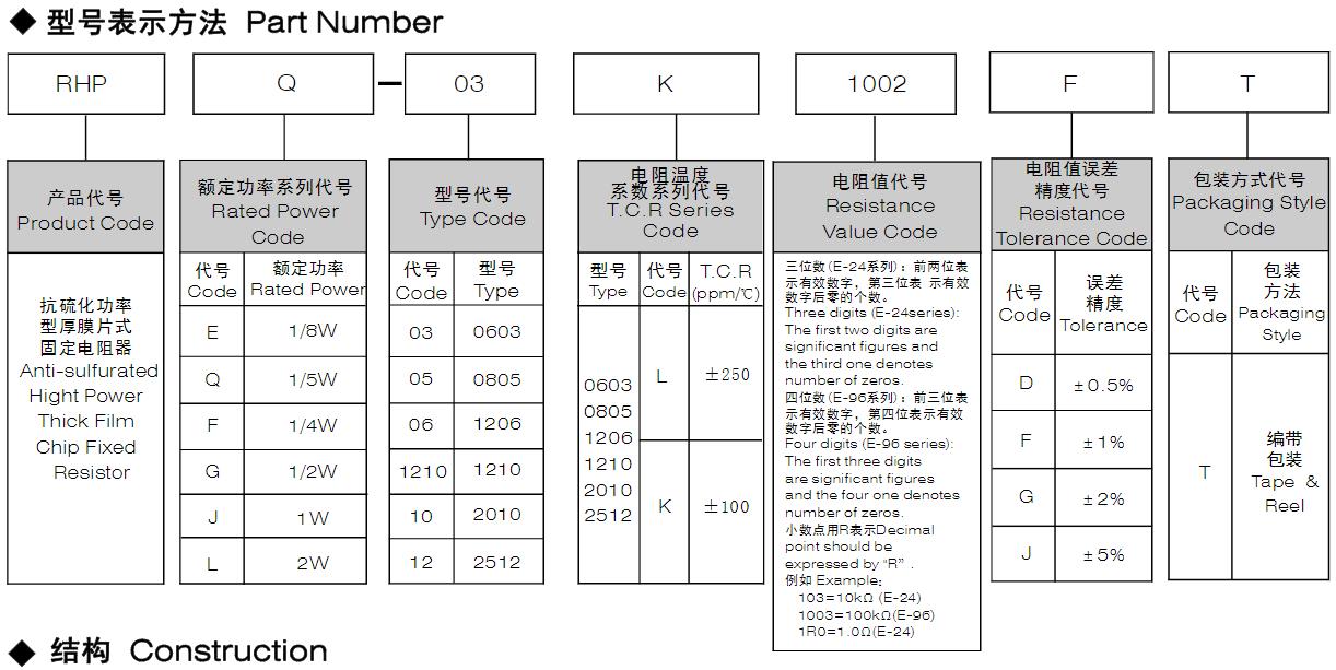 風華高科抗硫化功率型厚膜片式固定電阻器型號命名規(guī)則: