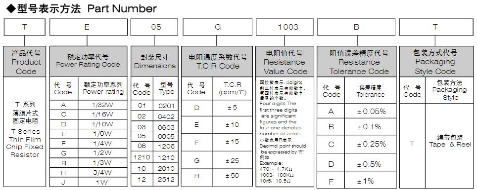 風華高科薄膜片式固定電阻器型號命名規則: