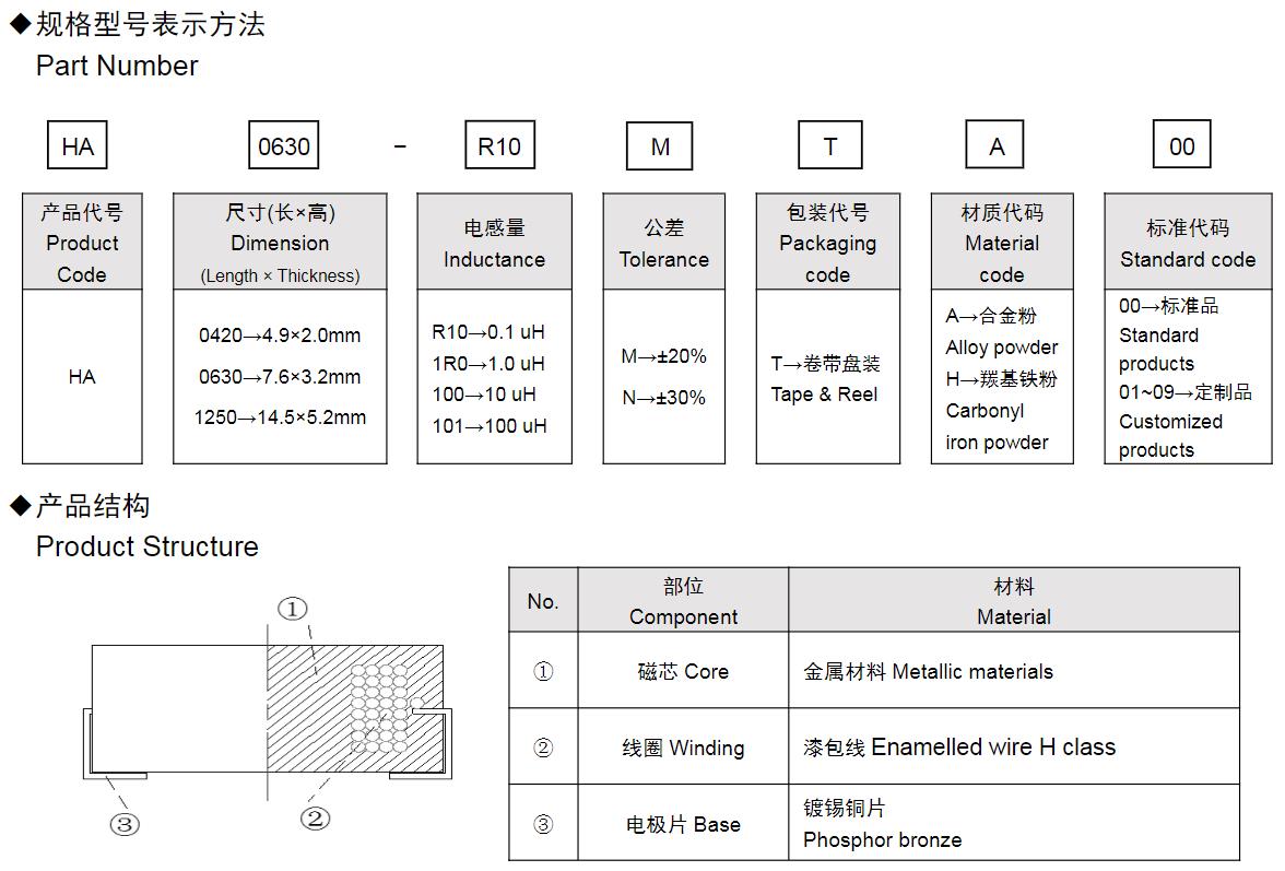 風華高科HA系列功率電感器命名規(guī)則: