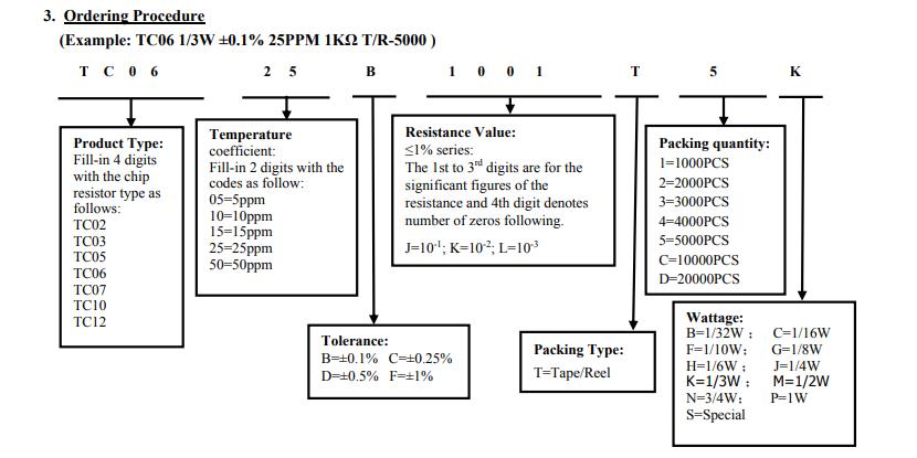 厚聲薄膜電阻命名規則:
