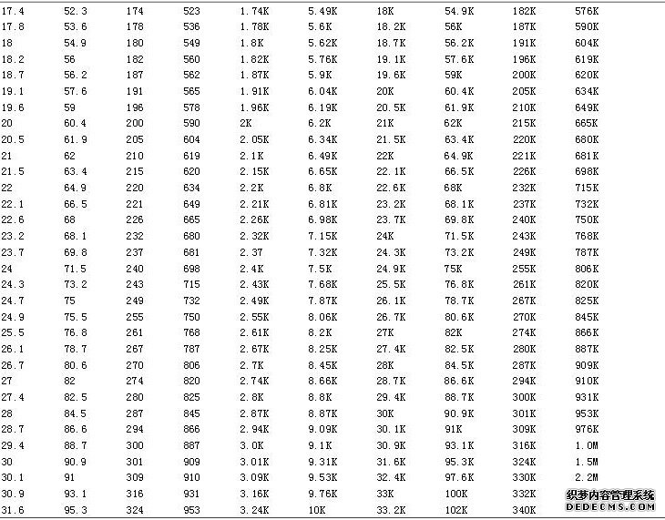 根本沒有的阻值,然后還要篩選等等,關鍵的問題是沒有阻值表可以套用,貼片電阻都是基于E24-E96系列來定的,可以快遞查詢到相關的阻值!