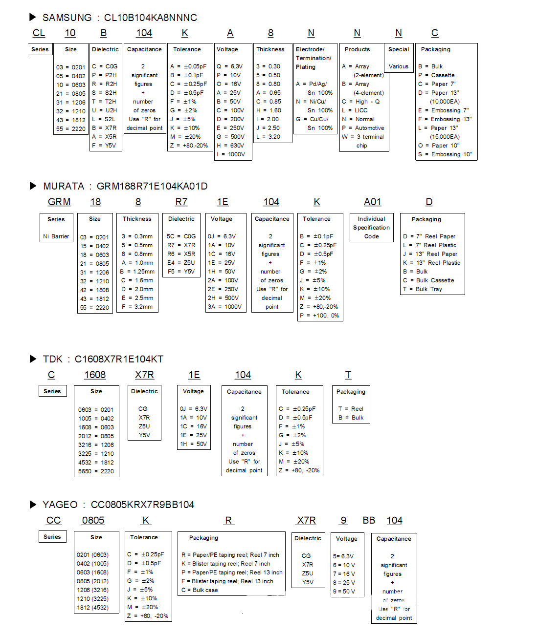 貼片電容的命名: 各大貼片電容品牌廠商命名規(guī)則: