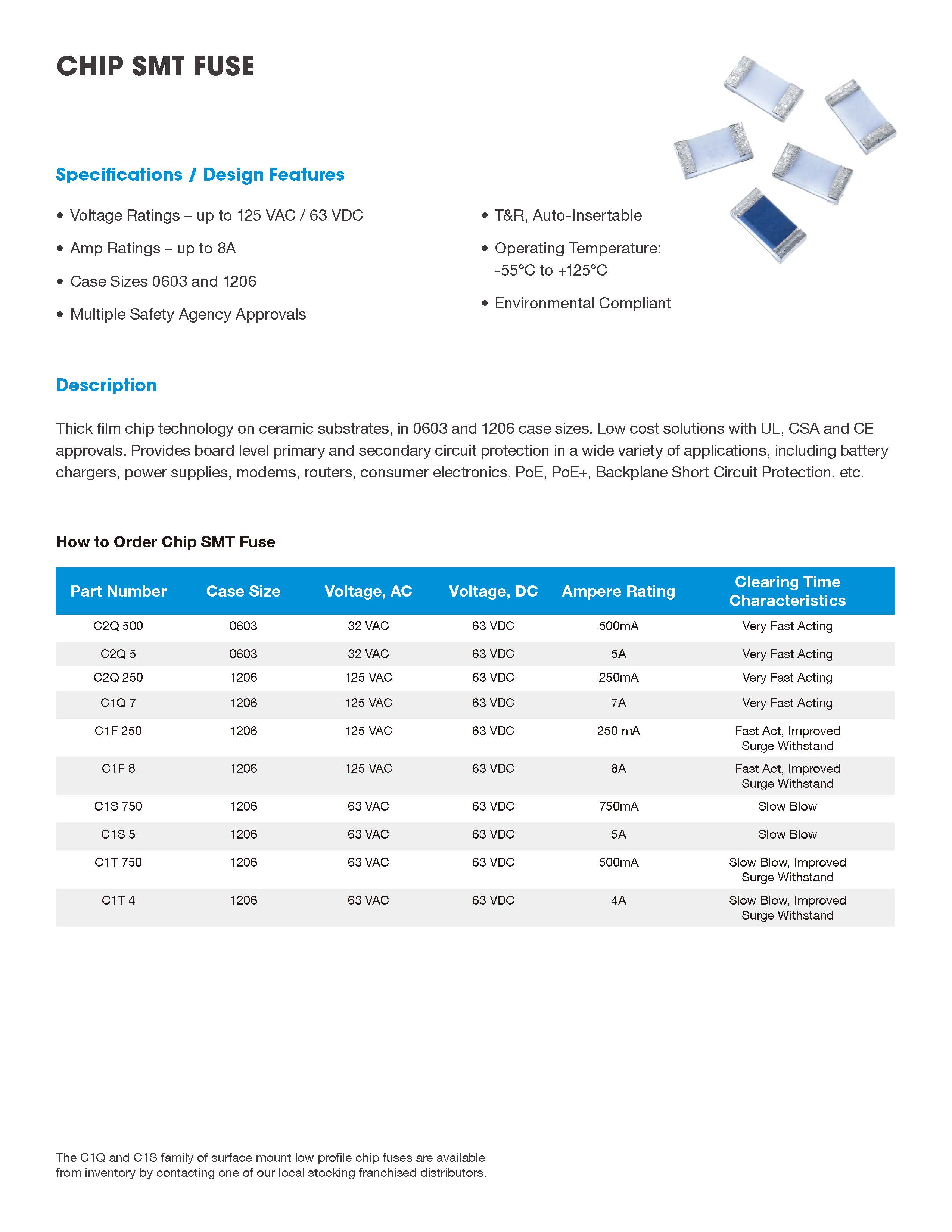 陶瓷基板上厚膜芯片技術,0603和1206個尺寸。 具有UL,CSA和CE的低成本解決方案