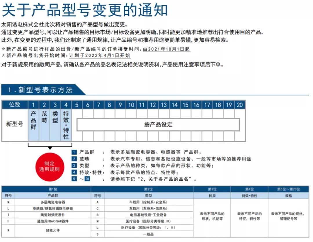 TAIYO YUDEN太陽誘電株式會社此次將對銷售的產品型號做出變更。