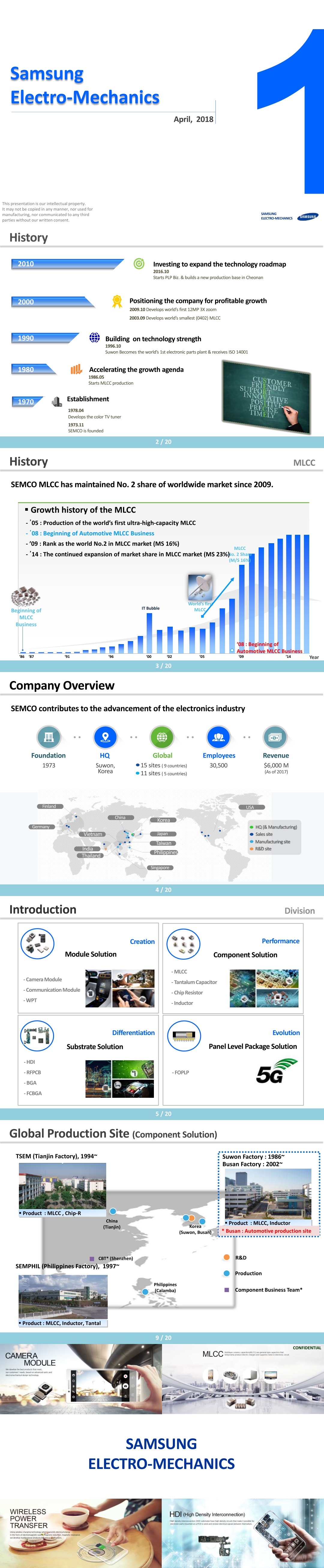 三星電機成立于1973年,在包括韓國的全球范圍內發展成為開發及生產核心電子部件的企業。