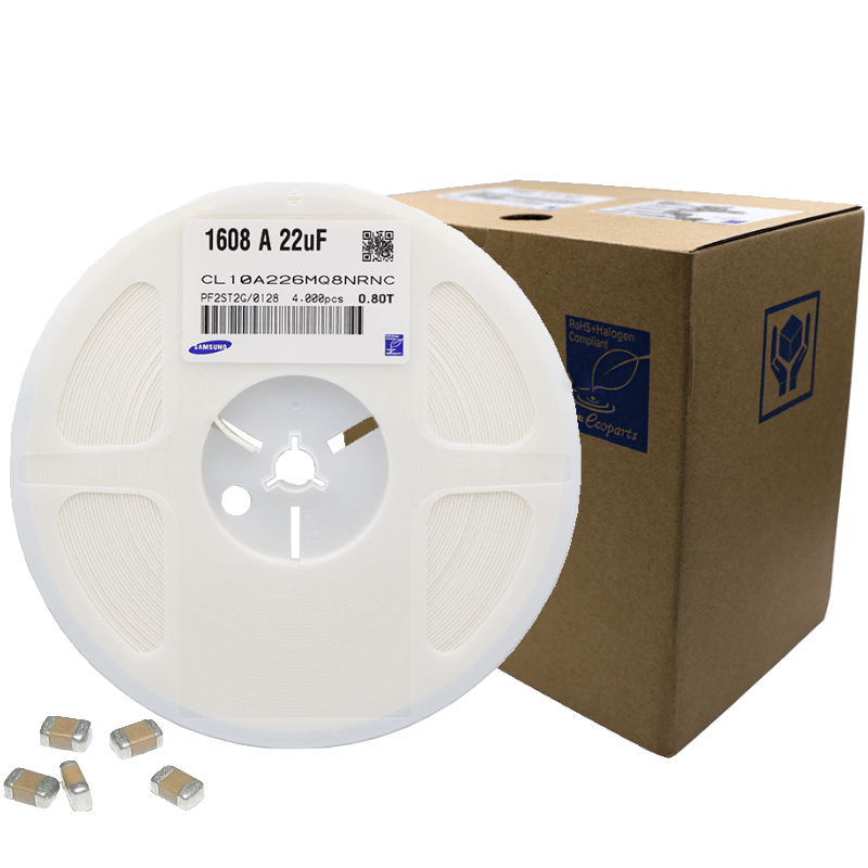 SAMSUNG三星貼片電容:?I 類,II 類電容 (通用型)?產品:NP0、X7R、X5R?應用:消費性電子電器應用線路?尺寸:0201 ~ 1210?精度:±5%、±10%、±20%?優勢:高容>100nF 的市場全球第二?特色:高容產品?認證:IEC?車規電容 (X7R、NP0)?產品:X7R、NP0?應用:通訊基站、網絡設備、汽車電子、工業工控?尺寸:0201 ~ 1206?精度:±